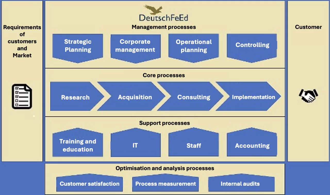 Support processes are provided to ensure the smooth running of the value creation processes. This ensures that customer requirements are met.